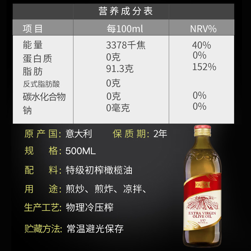 📚 欧萨特级初榨橄榄油1L 意大利进口西餐凉拌油醋汁沙拉炒菜食用油