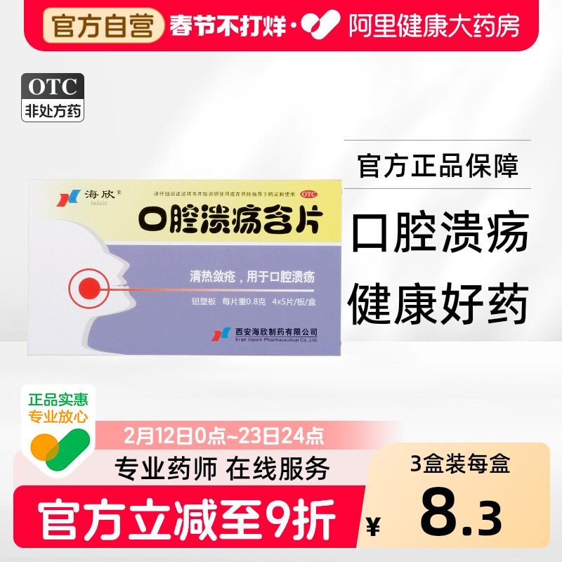 📚 海欣口腔溃疡含片片剂专用口疮消炎药治疗药物反复特效生疮口舌vc