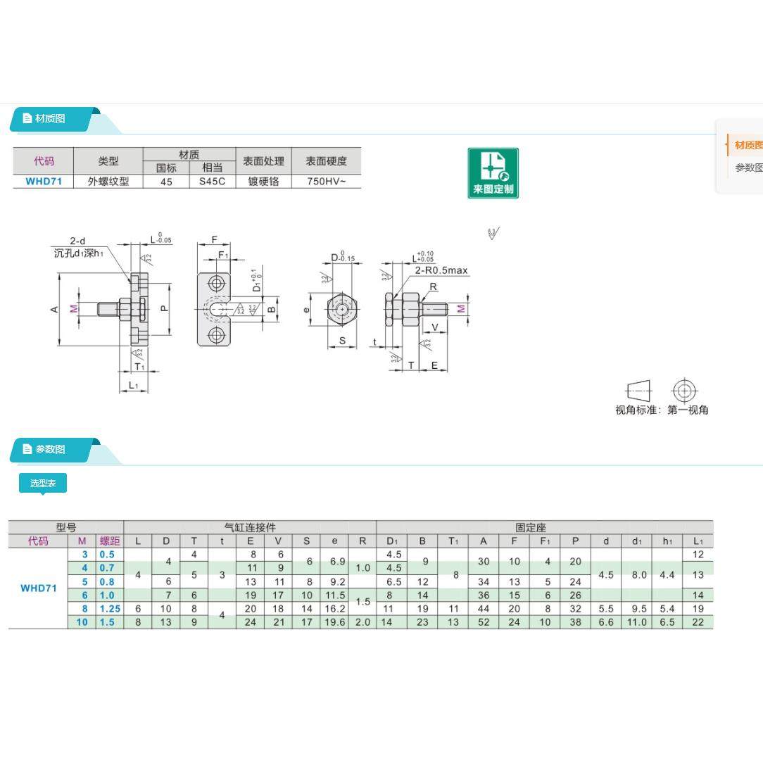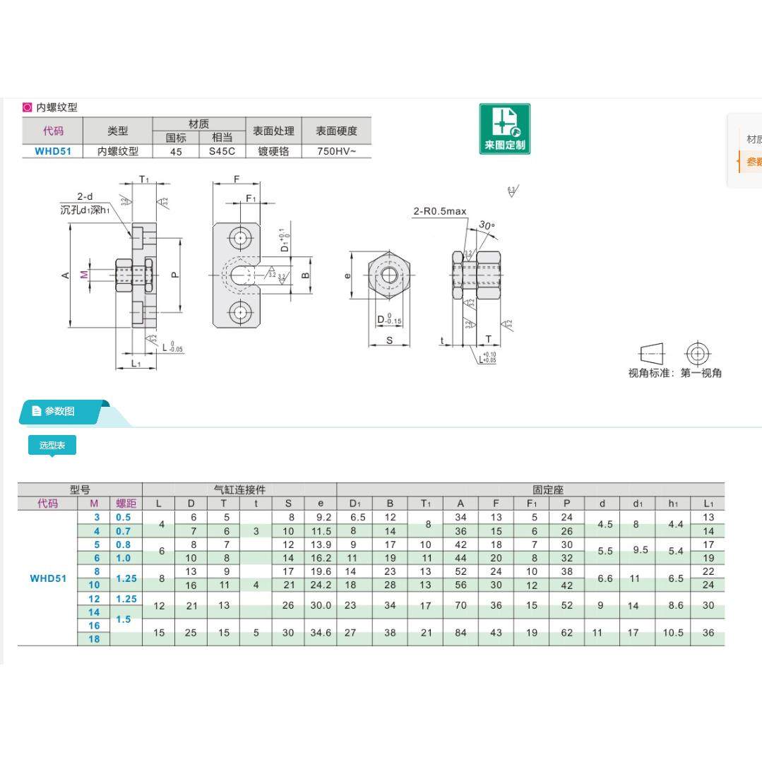 📚 气缸浮动接头连接件内螺纹型WHD51/WHD71-M5-0.8/M6-1.0/M8-1.25
