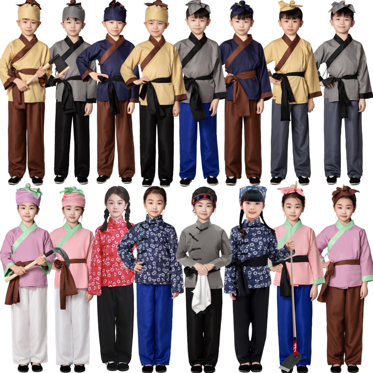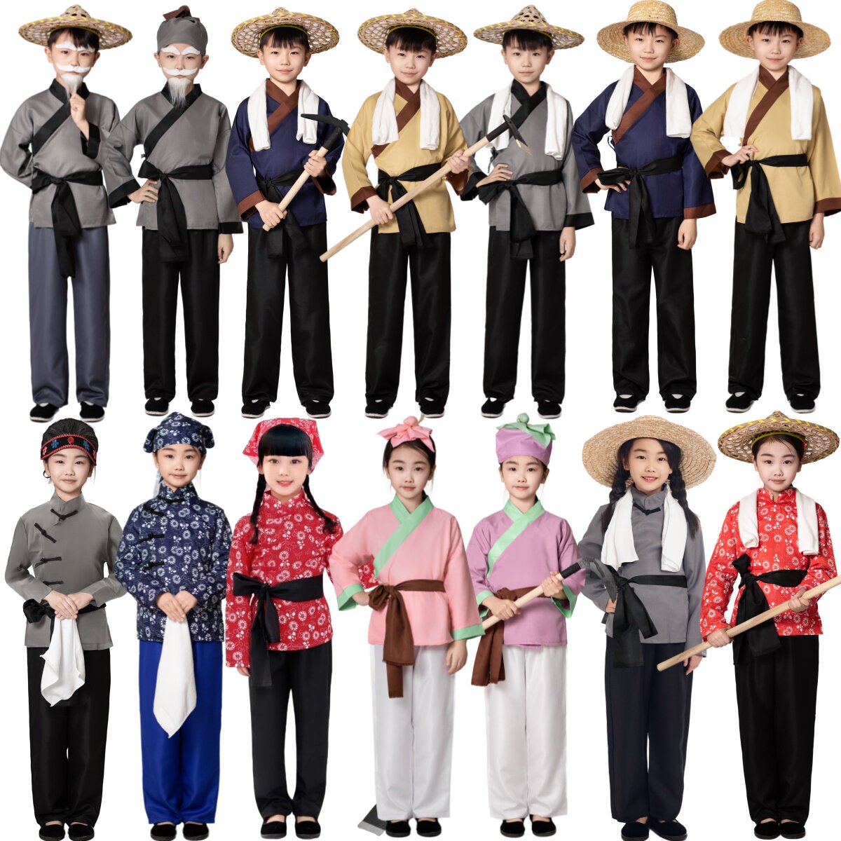 📚 儿童愚公移山演出服农夫农民村姑百姓店小二大禹治水悯农表演服装