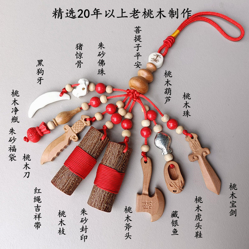 📚 老桃木剑挂件婴儿童孕妇夜晚啼哭夜路平安男女随身携带东南桃木枝