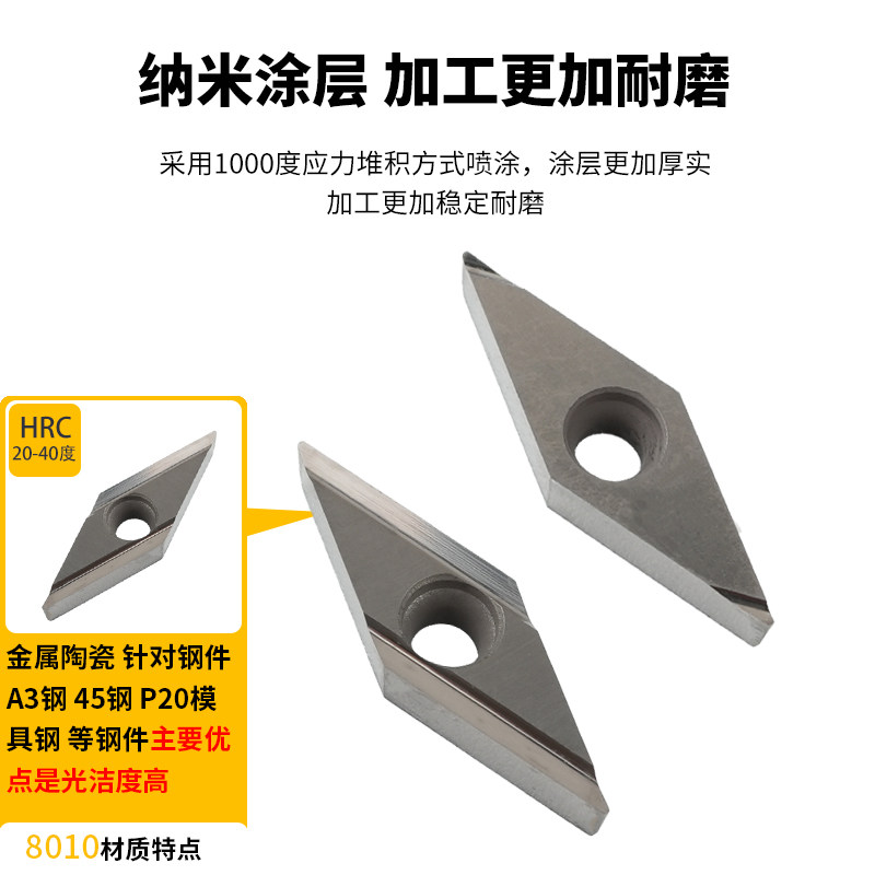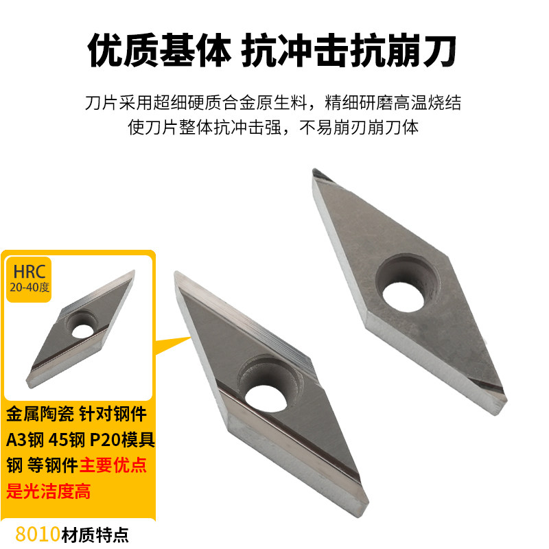 📚 刃天下陶瓷刀片菱形VBGT110302/04R-PY/L-PY RT8010 钢件光洁度高