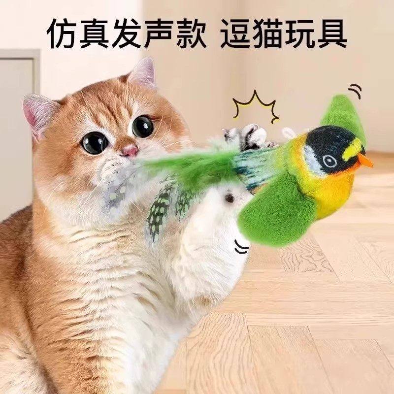 📚 【下单立减30】猫玩具自嗨解闷羽毛真小鸟幼猫啃咬专用逗猫棒QQ