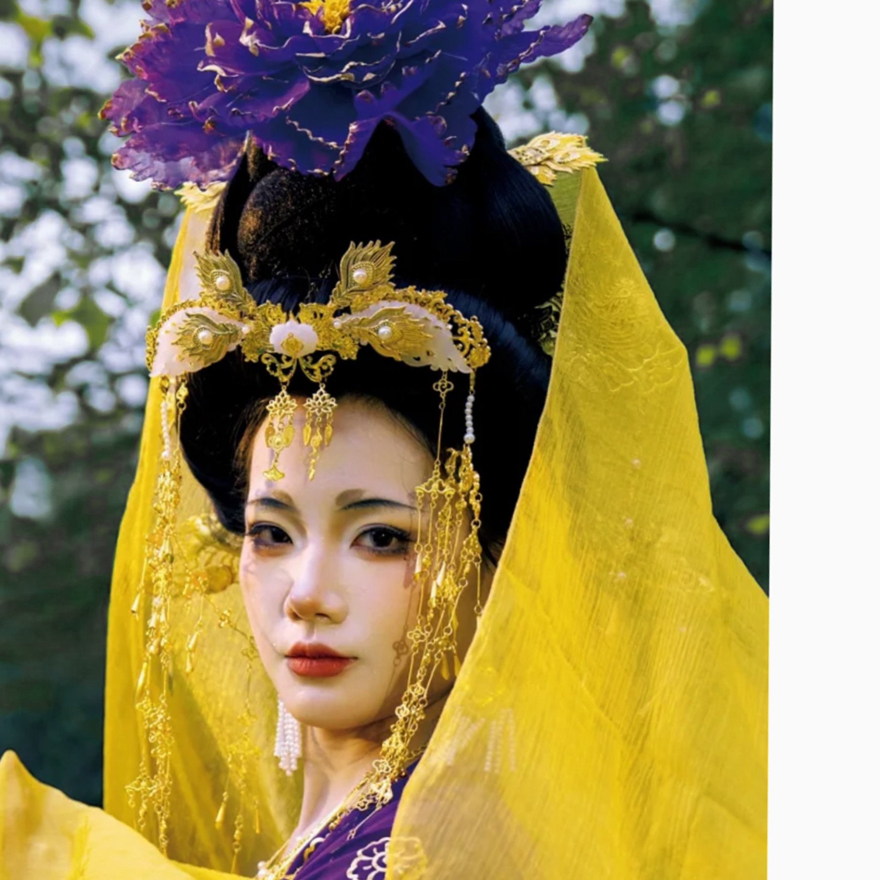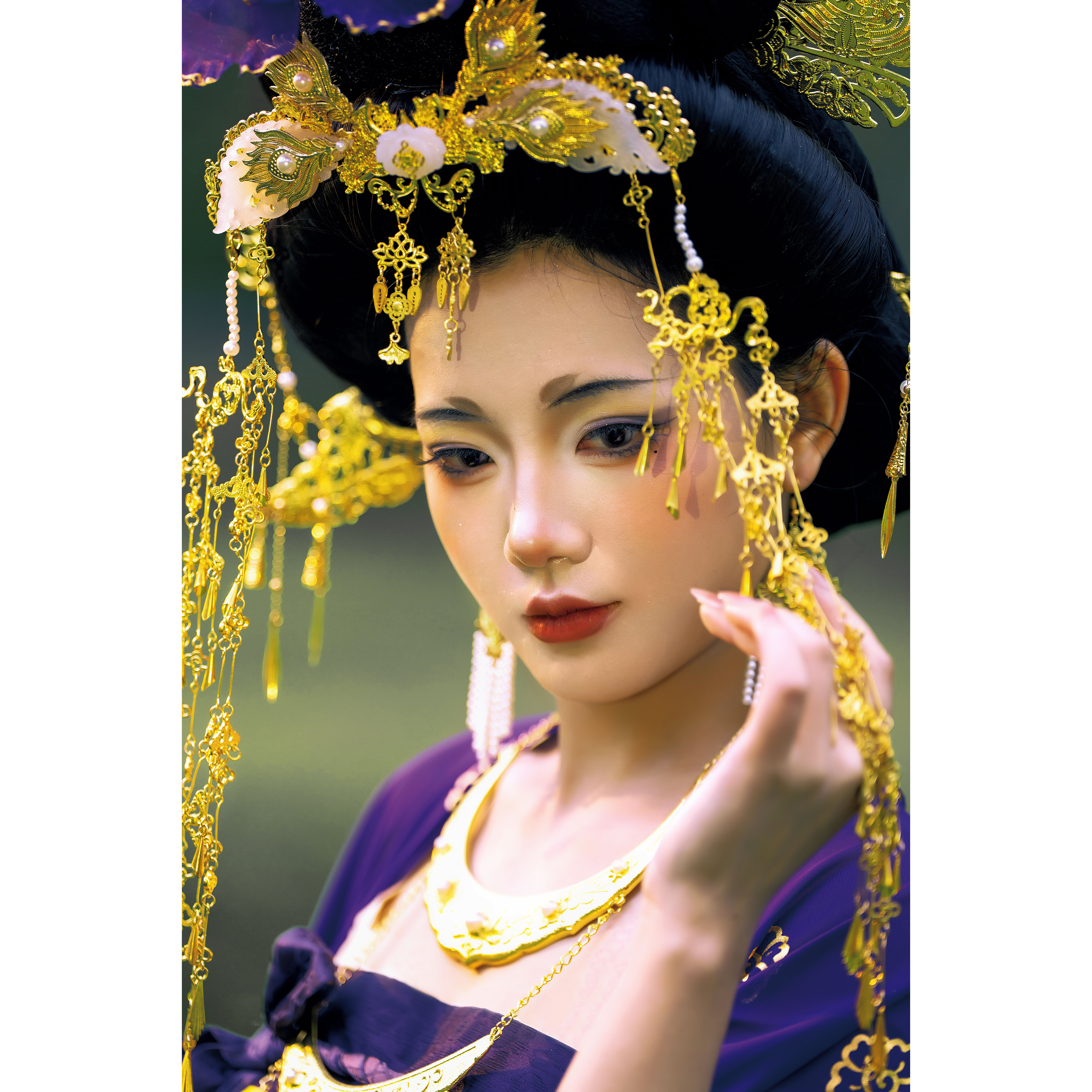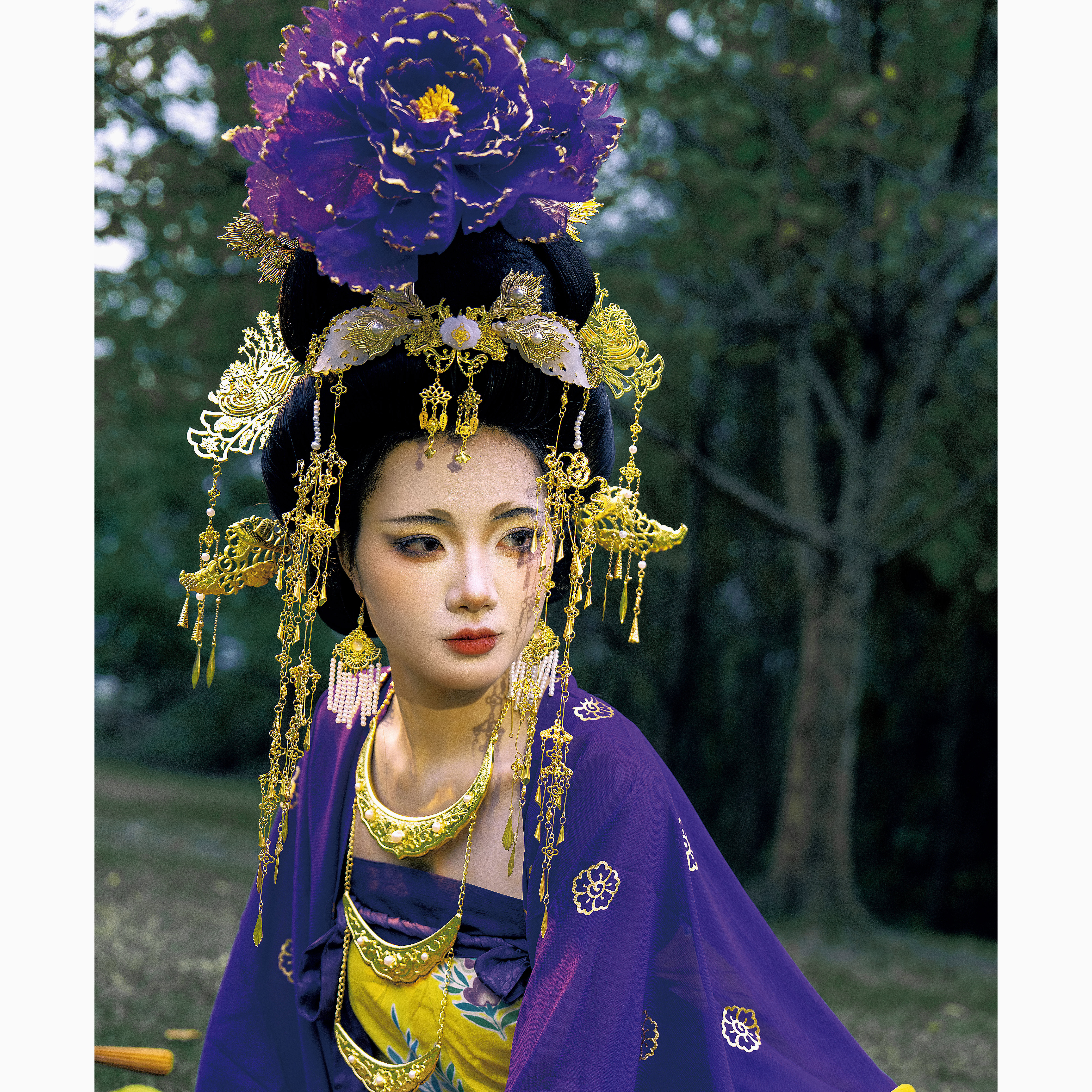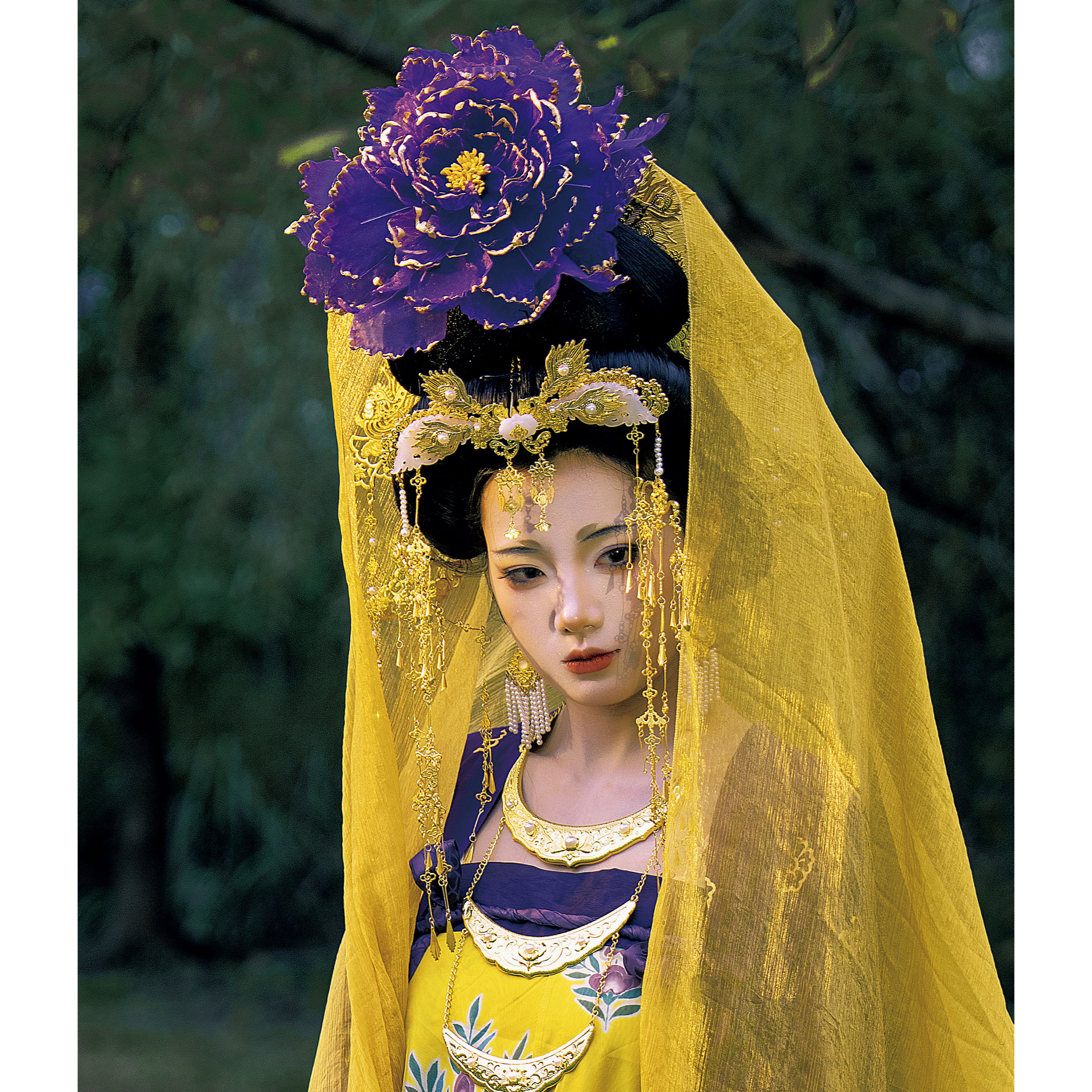 📚 【霜翎阁】五代南唐风汉服配饰品长流苏额冠步摇大牡丹{凝夜紫}