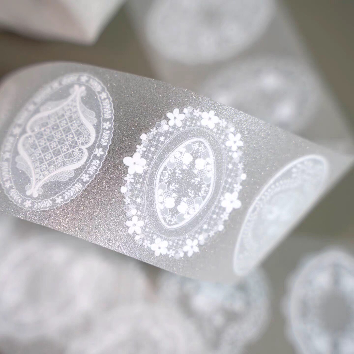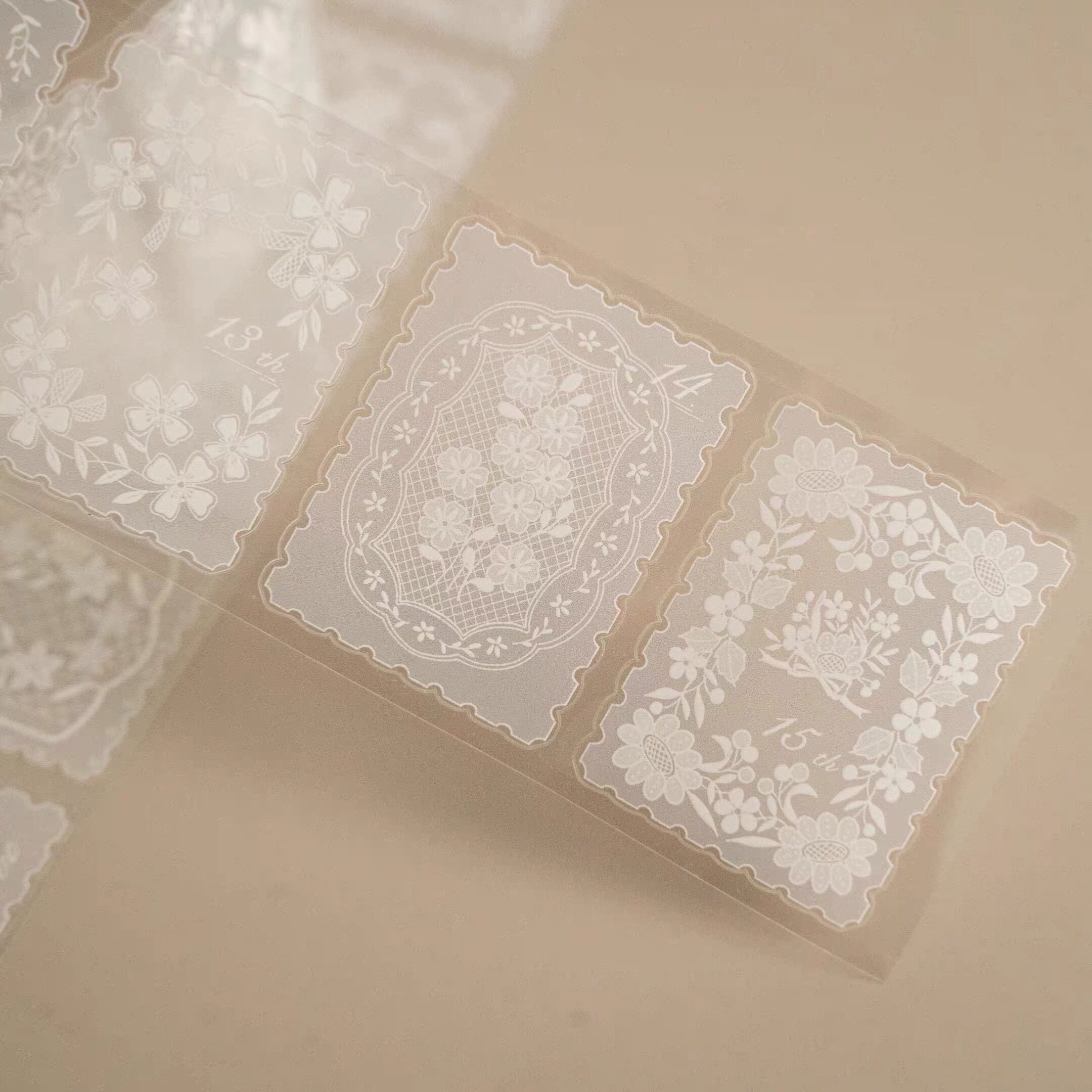 📚 浮光分装 Hoshi奶芙蕾丝邮票蕾丝圈蕾丝布标分割线 模切手帐胶带