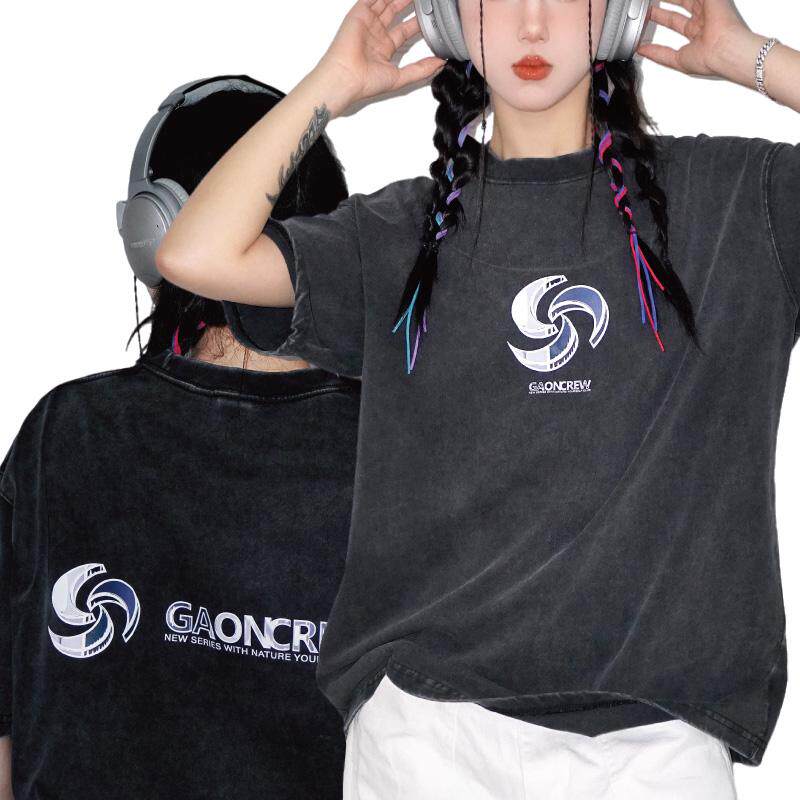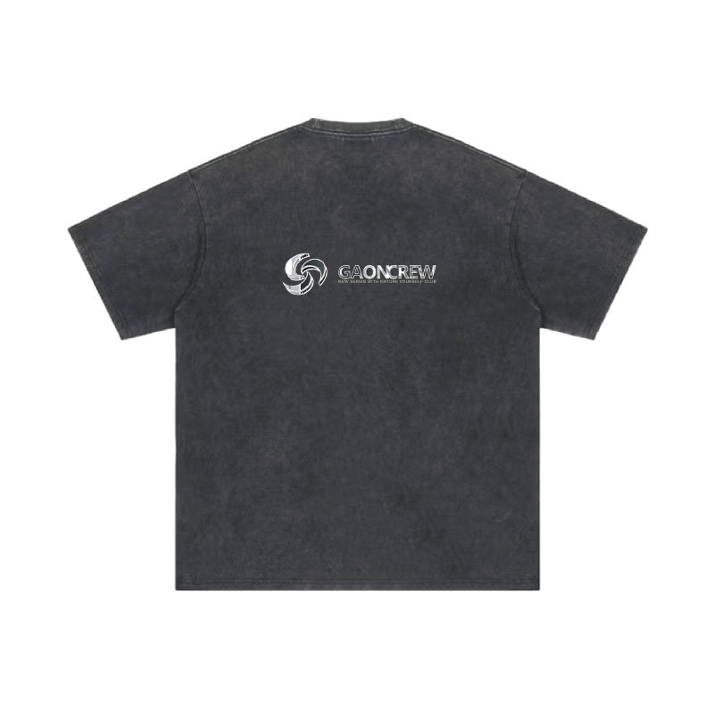 📚 GAONCREW X NYC俱乐部 230G做旧水洗金属风车印花圆领短袖T恤男女
