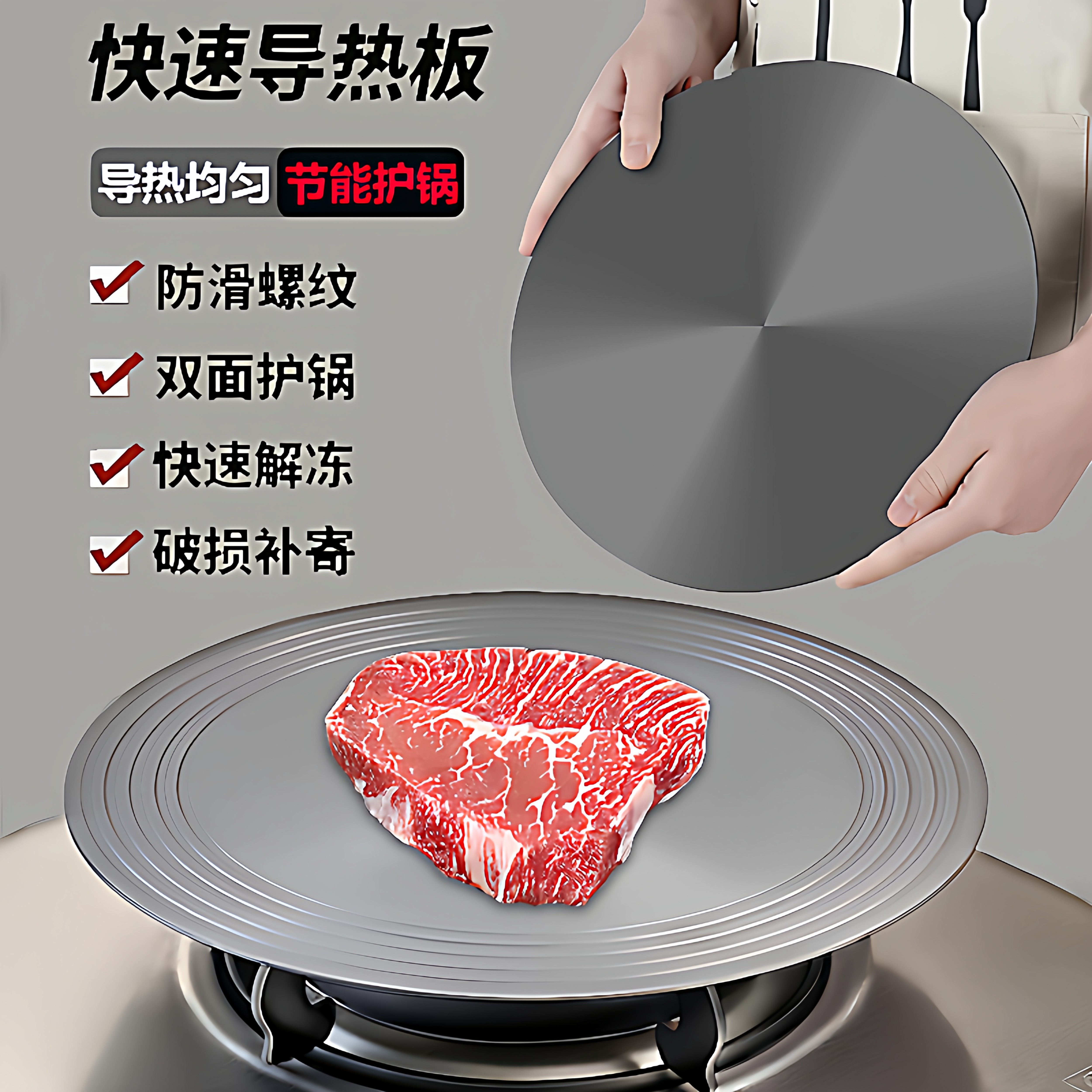 📚 导热板煤气燃气灶锅底防烧黑加热板护锅垫解冻电磁炉隔热盘带手柄