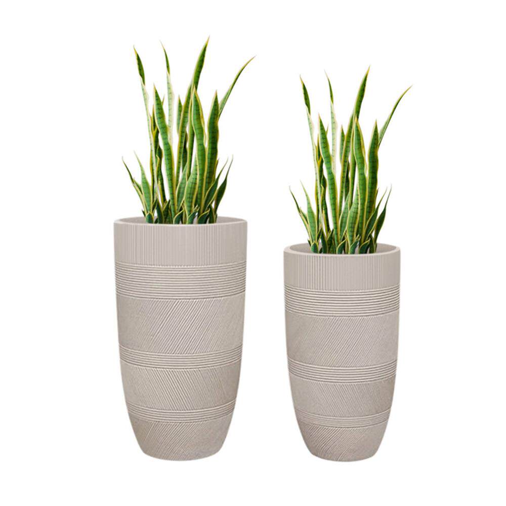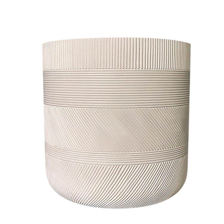 📚 斯堪的纳维亚圆形落地大花瓶家居样板房软装饰插花花盆水泥条纹花