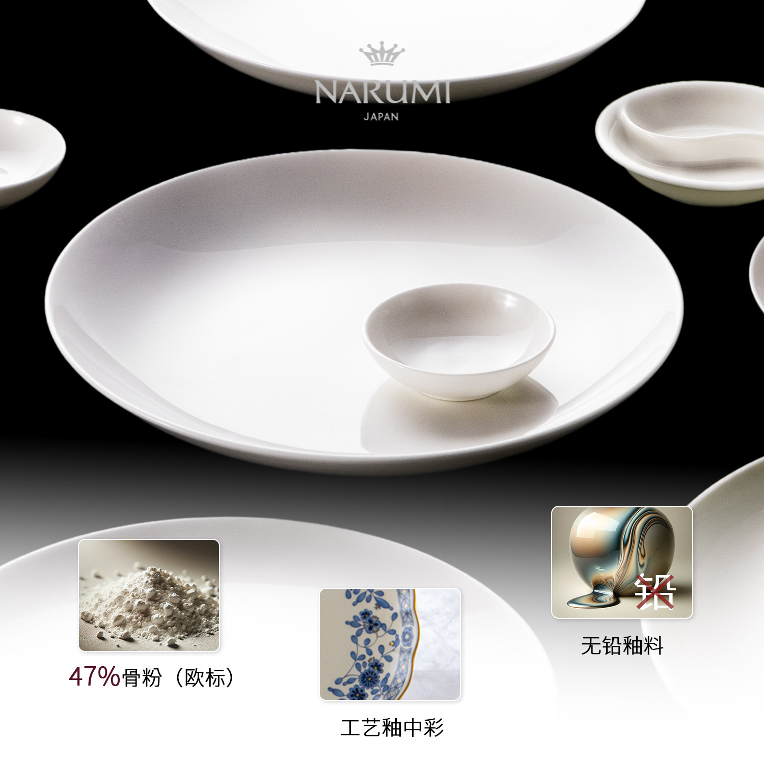 📚 日本NARUMI/鸣海CHINESE WHITE系列 纯白餐盘/汤盘/调味碟/鱼盘