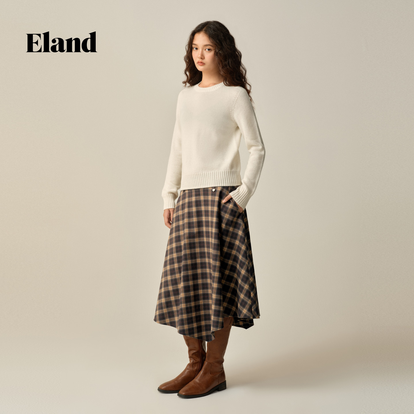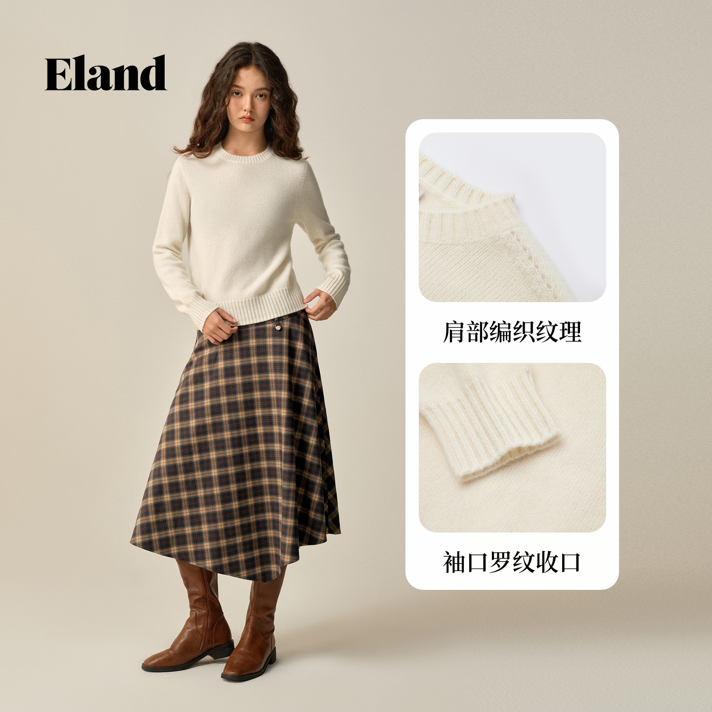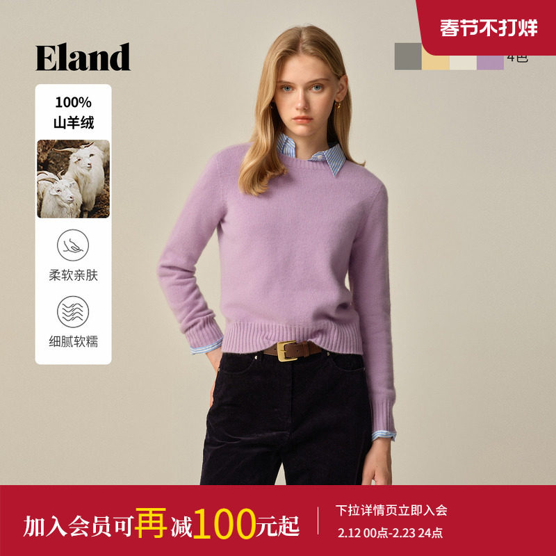 📚 【100%山羊绒】Eland衣恋毛衣女圆领保暖套头针织衫2025冬季新款