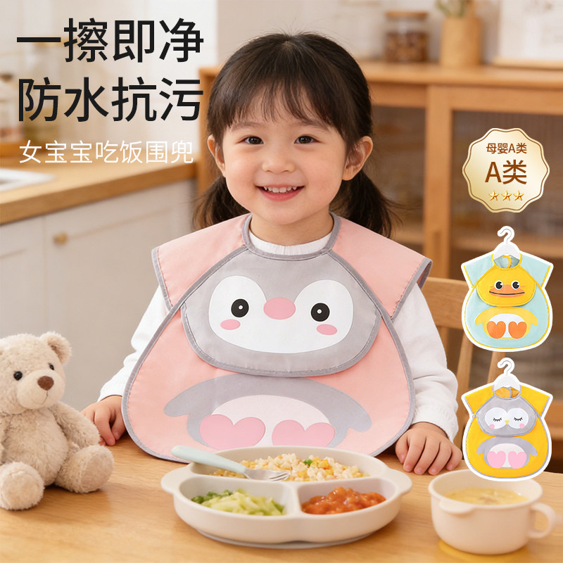 📚 男宝宝围兜吃饭防水防脏污儿童夏季罩衣婴儿可爱饭兜小女孩围裙