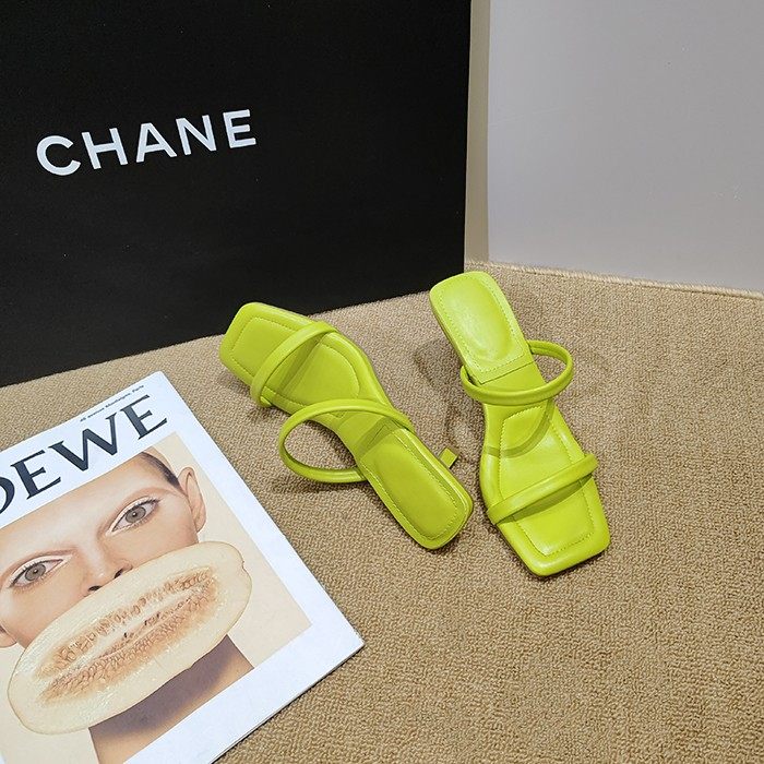 📚 清仓女鞋夏细跟高跟鞋时尚外穿凉拖一字带百搭方头露趾细带凉鞋