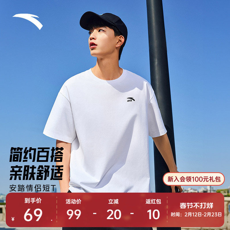 📚 安踏短袖t恤男女同款夏季简约纯色圆领半袖宽松透气情侣休闲上衣