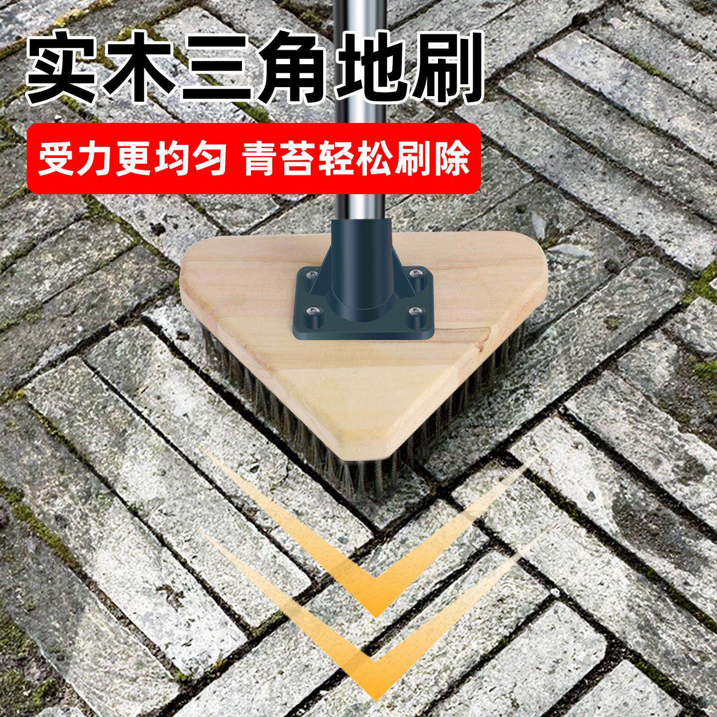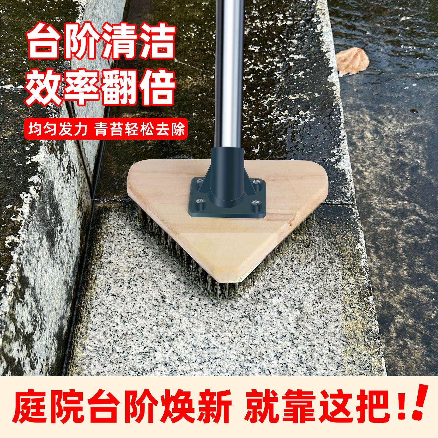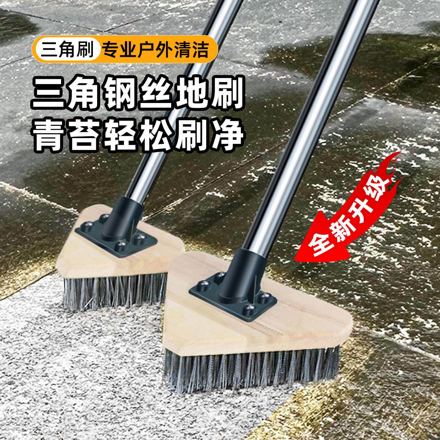📚 三角地刷硬毛长柄不锈钢丝庭院户外水泥地瓷砖清洁刷子户外地板刷
