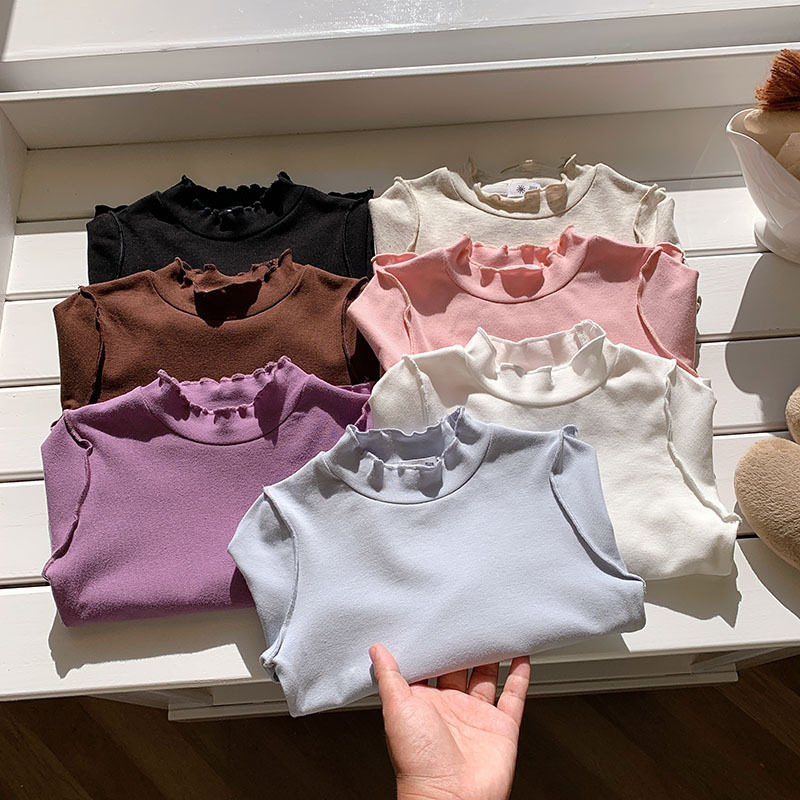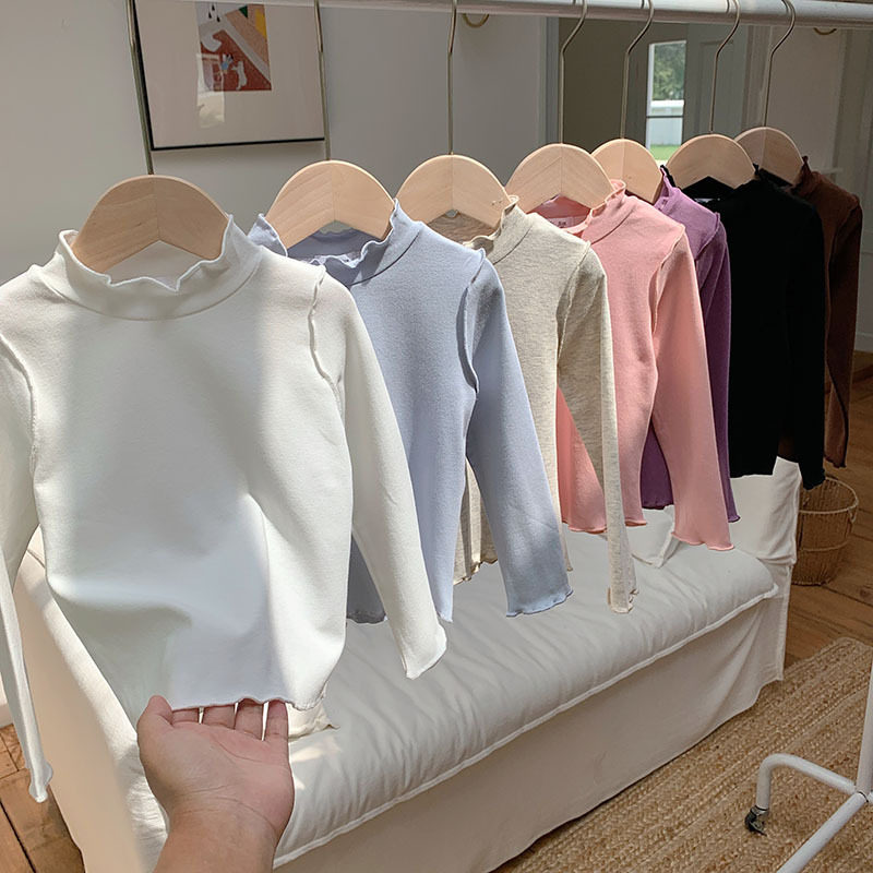 📚 秋季女童木耳边打底衫女宝宝小童儿童长袖t恤半高领内搭衣服上衣