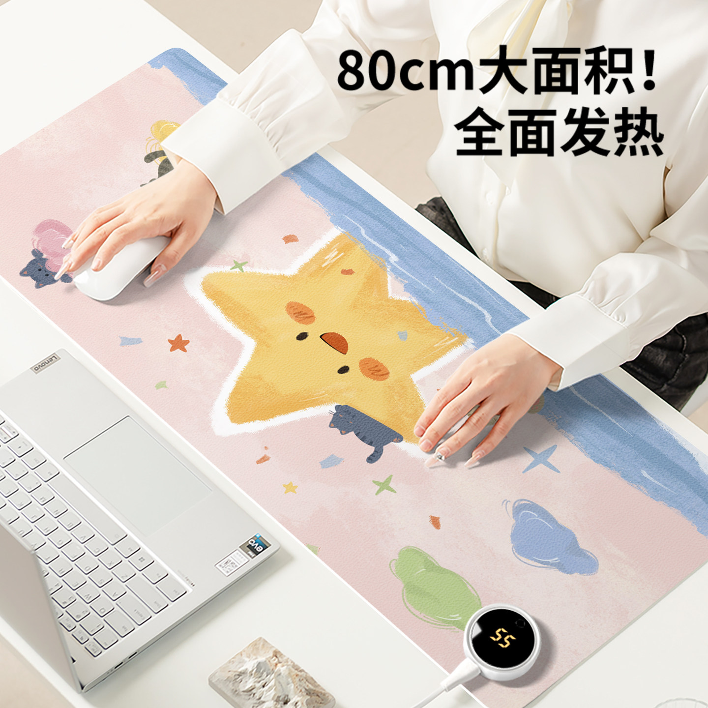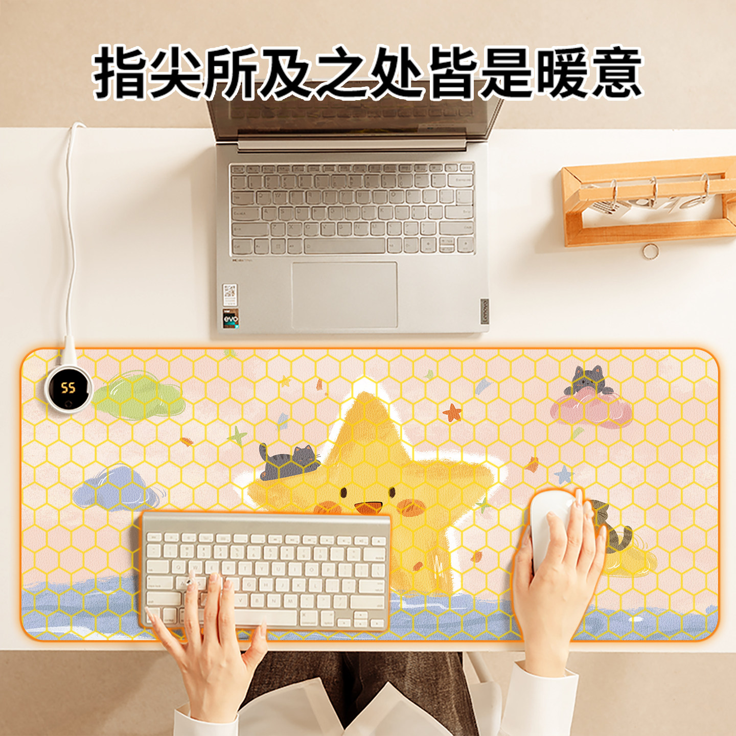 📚 可爱猫咪加热鼠标垫子女生超大暖桌垫学生学习电脑键盘滑鼠垫电热板防水左侧开关办公室工位桌面垫高颜值定制