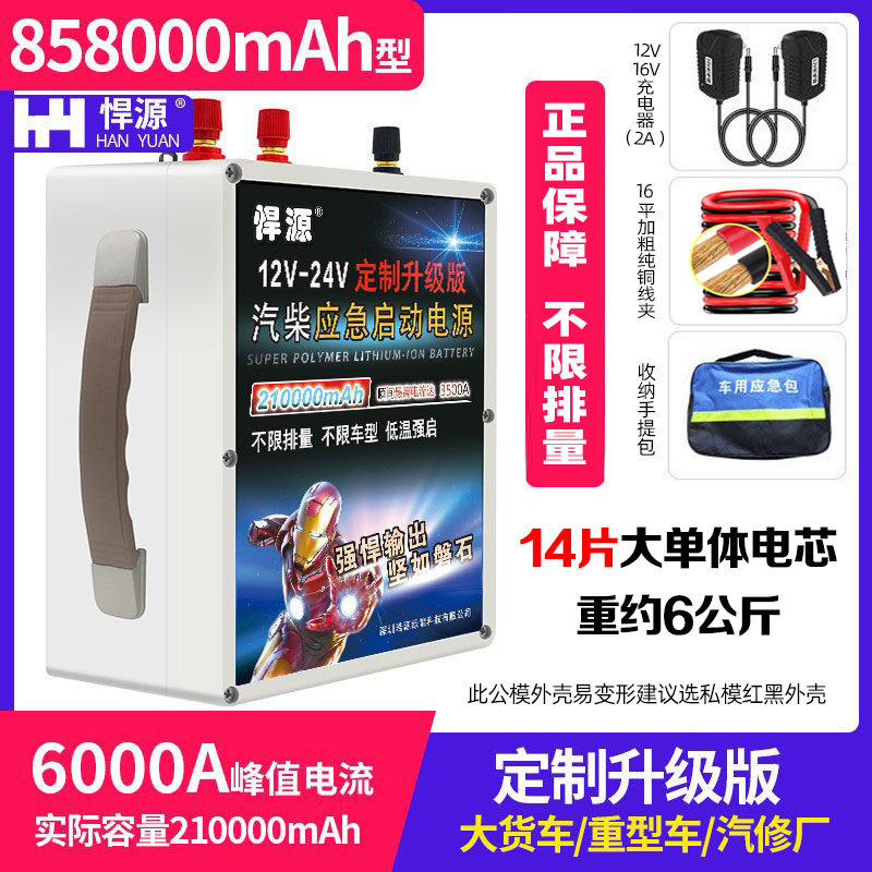 📚 悍源汽车应急启动电源12V24V电瓶充电打火大容量货车强启搭电神器