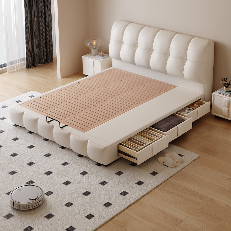 📚 Casa Relax泡芙复古奶油风实木储物床小户型实木榻榻米榉木排骨架