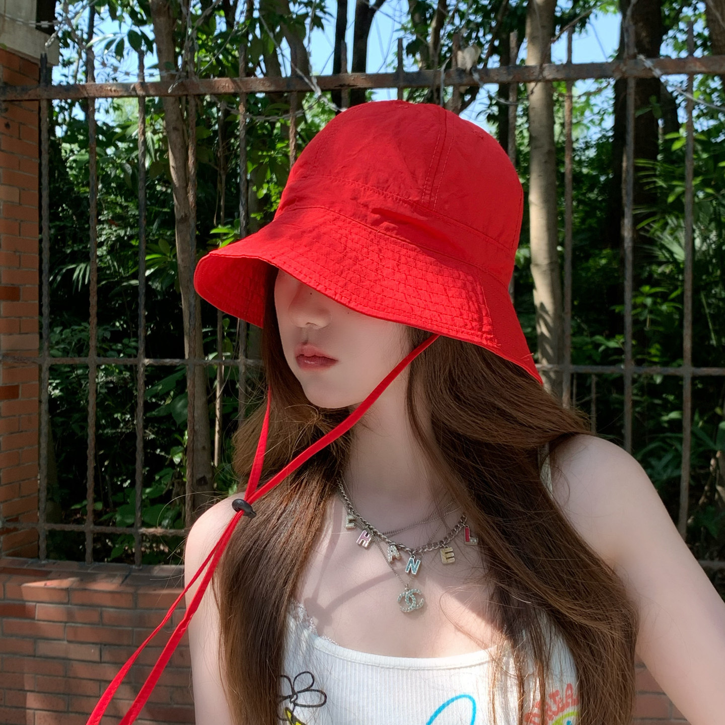 📚 小红帽速干抽绳渔夫帽女夏季红色遮阳帽可折叠防晒帽户外登山帽子