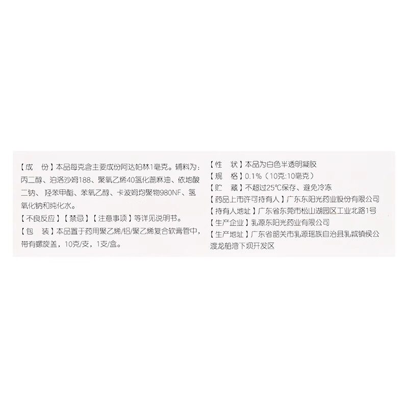 📚 东阳光阿达帕林凝胶10g痤疮粉刺丘疹脓疱阿达帕林凝胶正品医用