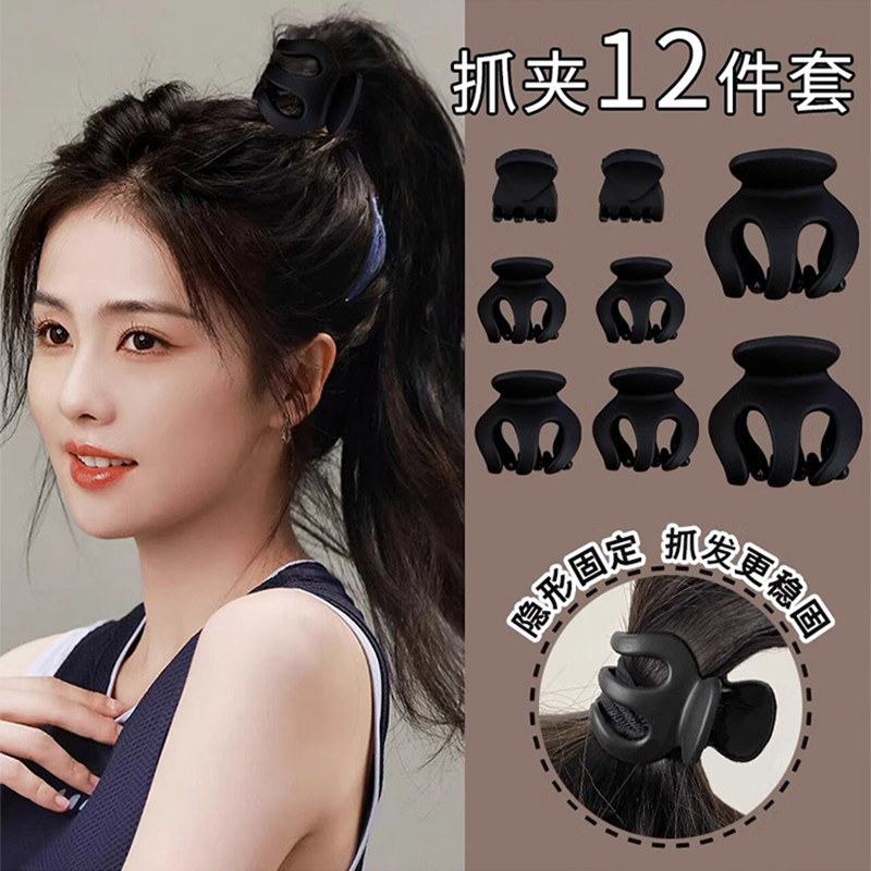 📚 磨砂黑色高马尾抓夹南瓜网红气质鲨鱼夹小号后脑勺夹子头饰发夹女