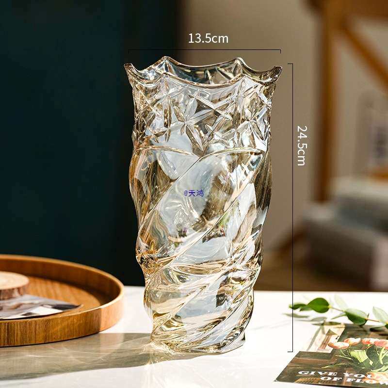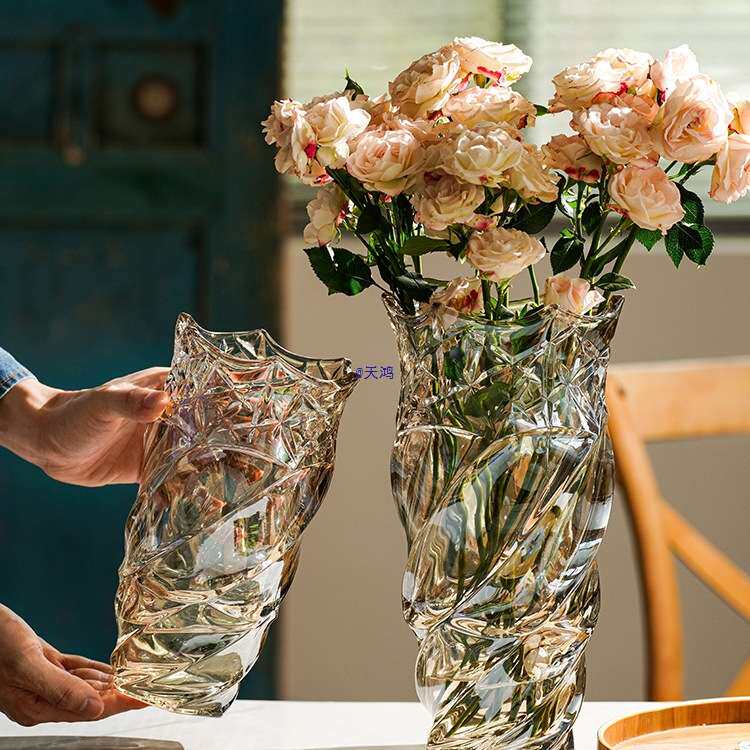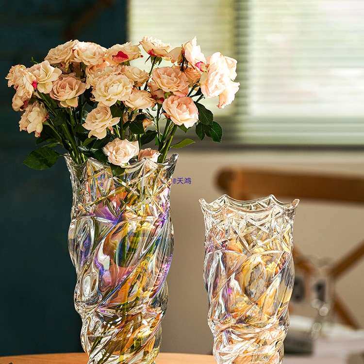 📚 风网红花瓶摆件客厅插花轻奢水晶玻璃北欧玫瑰卧室水养装饰品