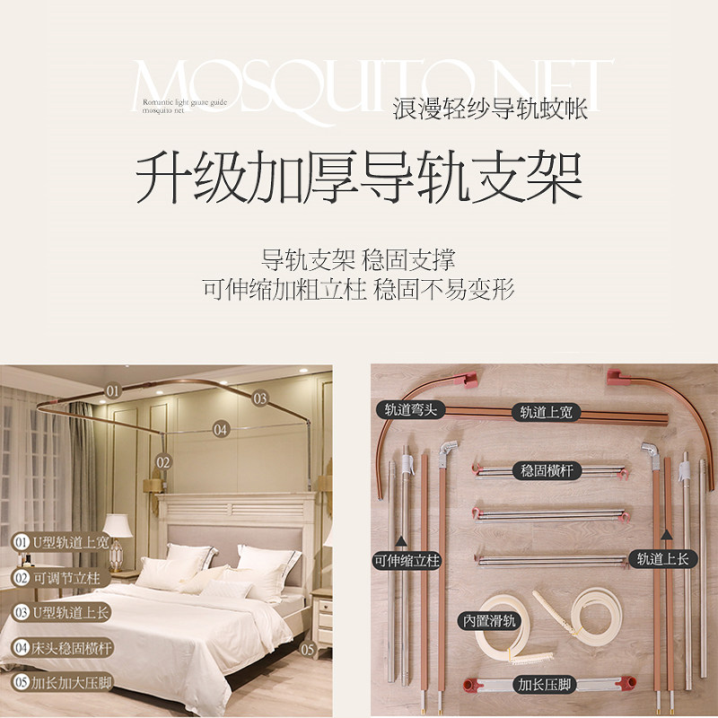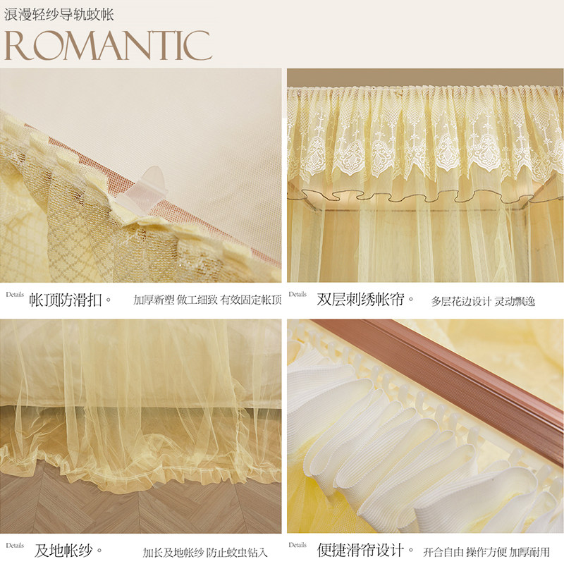 📚 尚尚芊蚊欧式帐渐变导轨双滑轮挂钩蚊帐加厚加密家用卧室落地蚊帐