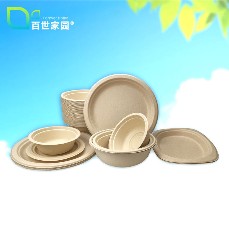 📚 加厚纸碗纸盘一次性整箱可降解本色环保餐具圆形商用烧烤餐盘碟子