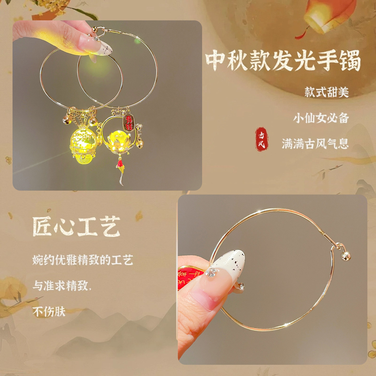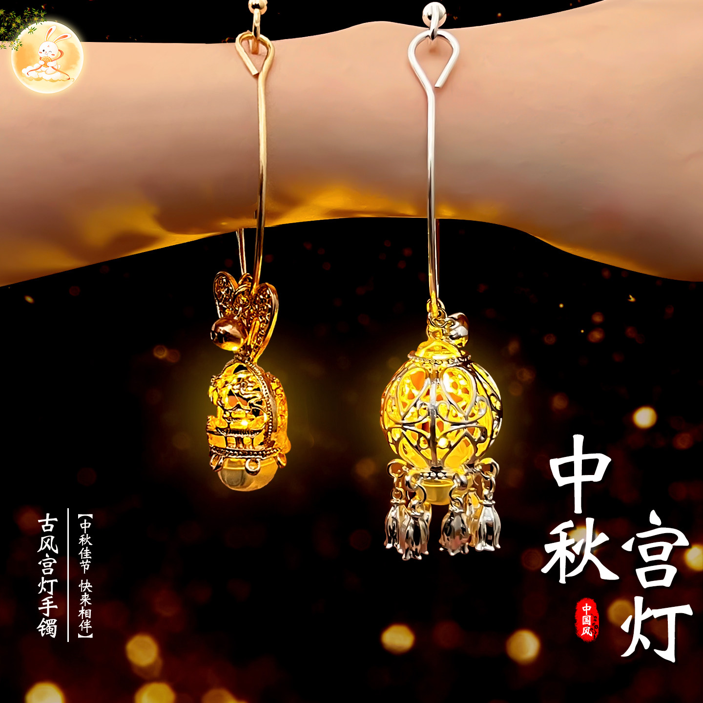 📚 中秋节发光宫灯手镯儿童古风灯笼手链汉服配饰流苏吊坠手环首饰品