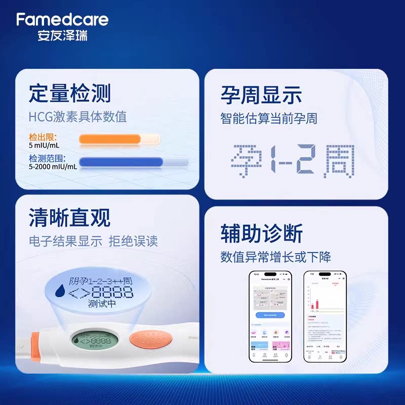 📚 安友泽瑞数字定量验孕宫外孕辅助非血HCG翻倍电子验孕棒重复使用