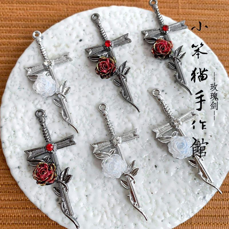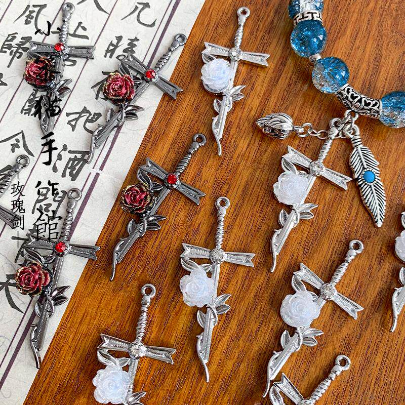 📚 【剑与玫瑰】原创小众映象款枪黑合金吊坠diy串珠手链项链配件