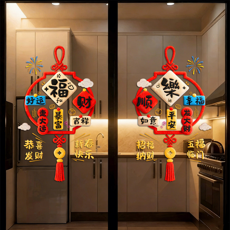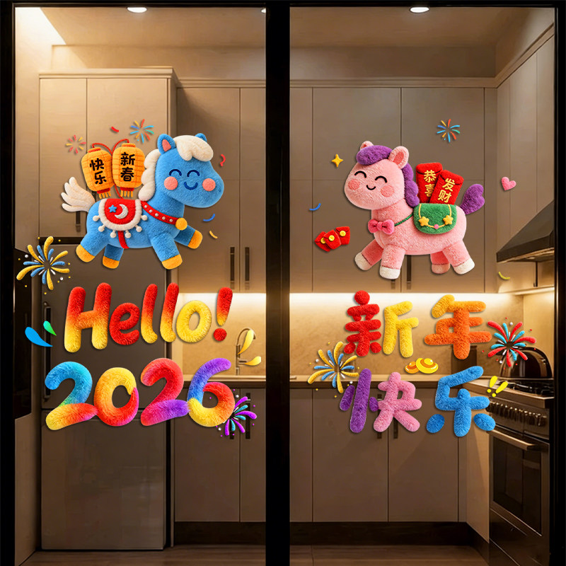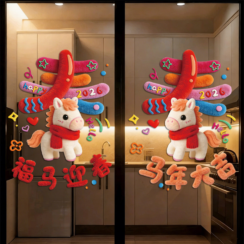 📚 马年春节装饰厨房门贴纸静电2026新年玻璃双面福字对联过年窗花贴