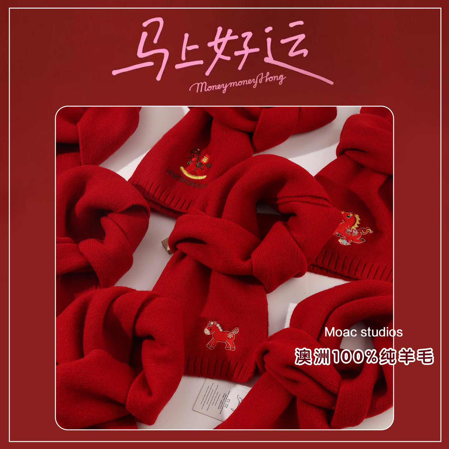 📚 马年本命年新年礼物红色100%澳洲羊毛围巾礼盒装可定制LOGO送妈妈