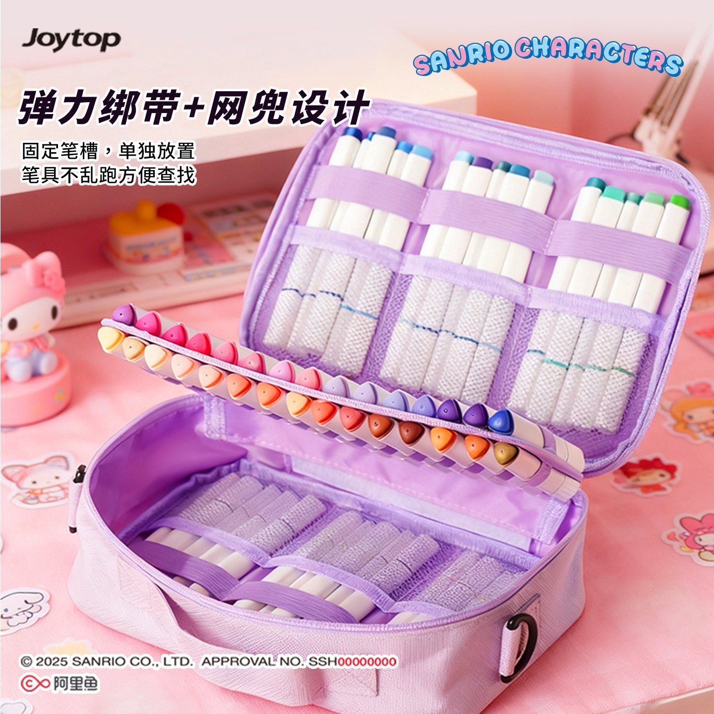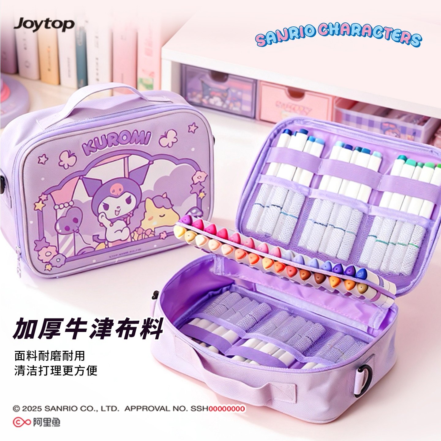 📚 三丽鸥马克笔收纳包大容量手提斜跨单肩可装60支绘画丙烯马克笔分层收纳盒便携收纳袋高颜值多功能笔袋文具袋