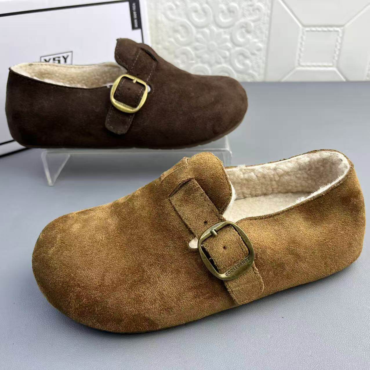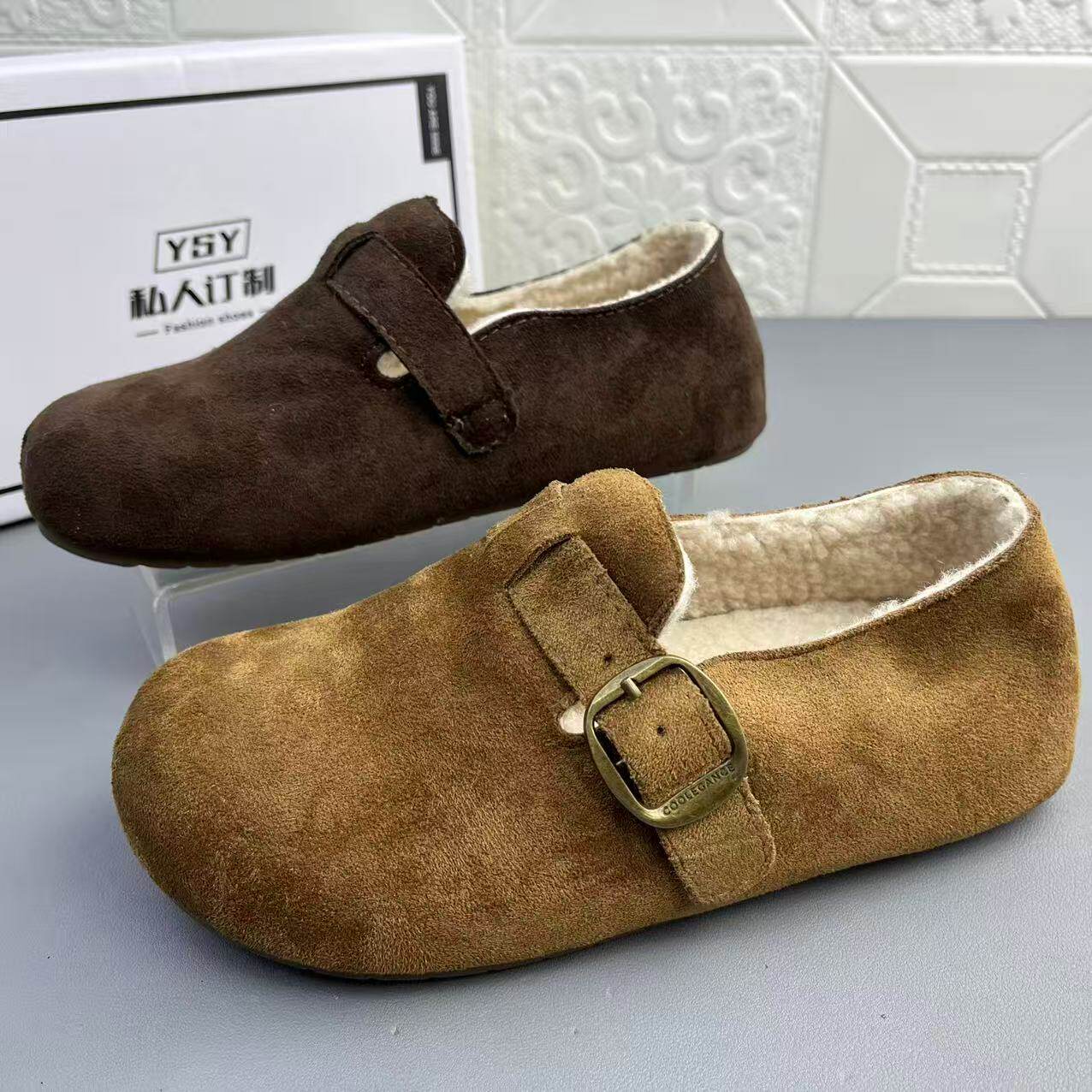 📚 奥莱撤柜处理时尚羊羔毛搭扣博肯女棉鞋高品质新款防滑耐磨棉单鞋
