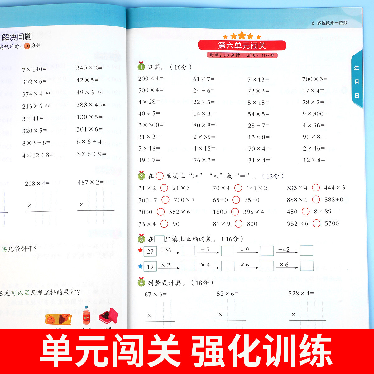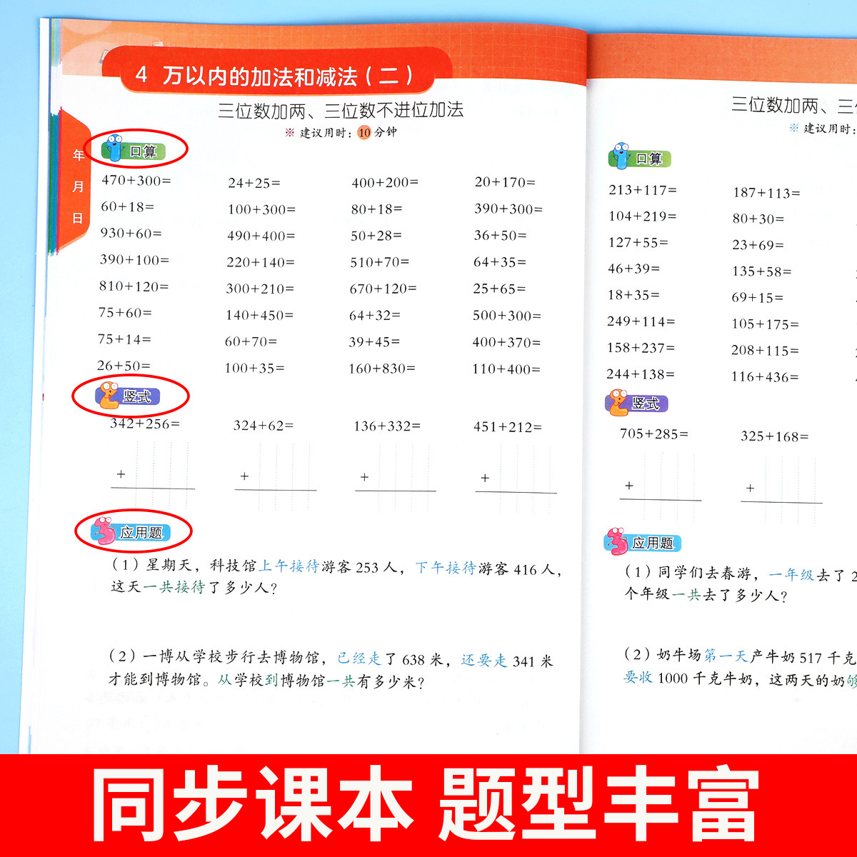 📚 小学生口算竖式应用题三合一人教版一年级二年级上册三四五年级竖式计算练习数学口算每天一练应用题专项强化训练天天练上学期RJ
