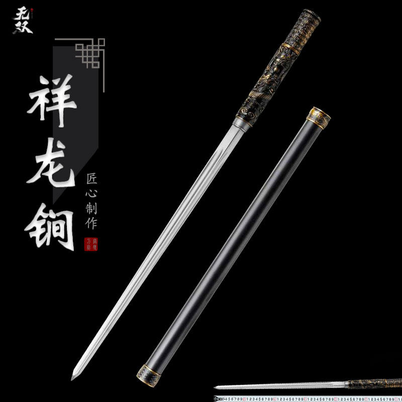 📚 棍中刀反接破甲锥登山杖龙泉锏刀具高锰钢户外防身冷兵器未开刃