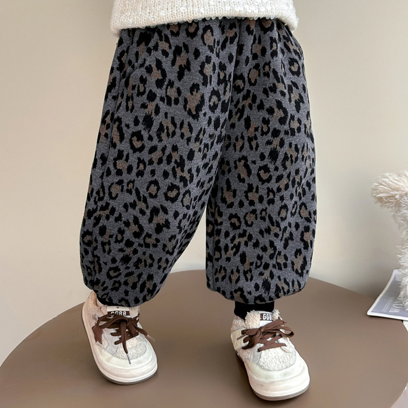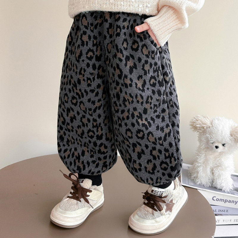 豹纹休闲裤冬装女童长裤