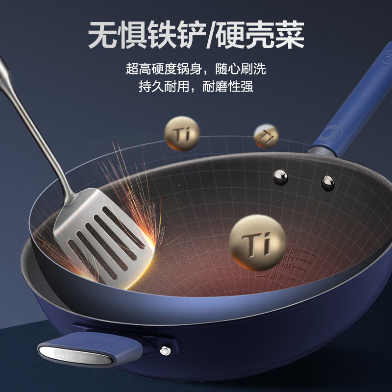 📚 爱仕达炒锅有钛0涂层不粘锅家用炒菜锅平底锅正品电磁炉燃气专用