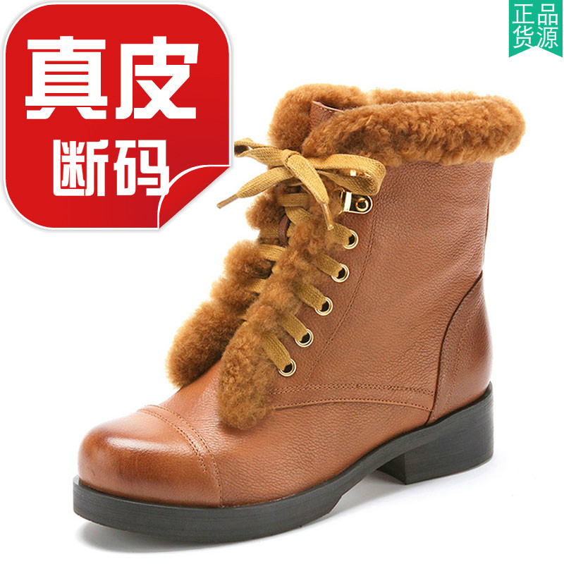 📚 真皮短靴子女软羊皮毛毛茸包边可爱马丁靴绑带拉链粗跟SS24S74D13