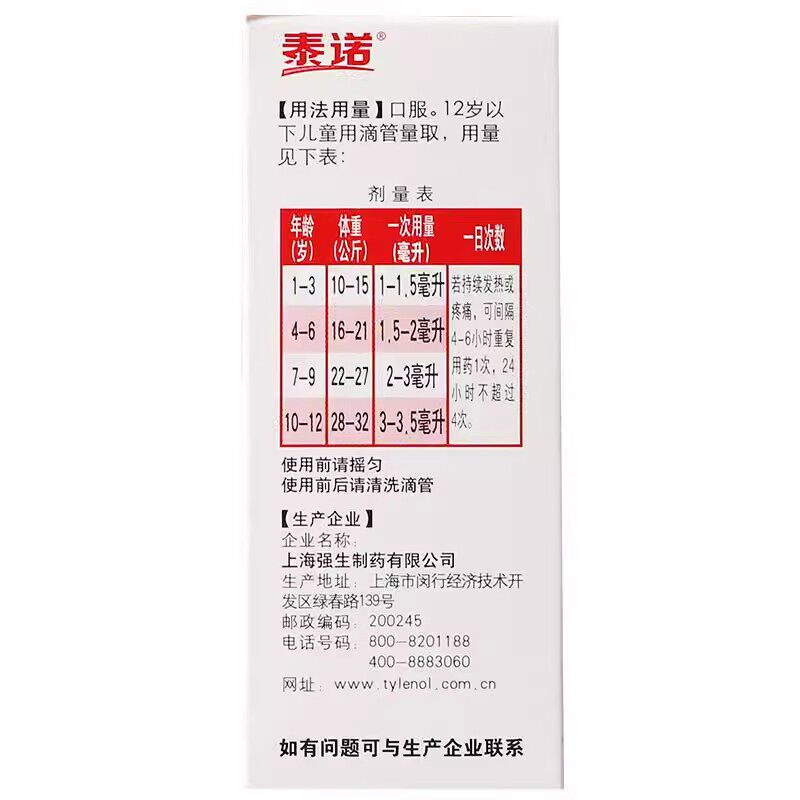 📚 泰诺泰诺林 对乙酰氨基酚混悬滴剂20ml*1瓶/盒儿童感冒引起的发热