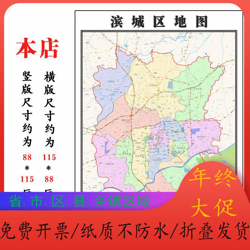 📚 滨城区地图1.15m山东省滨州市折叠版办公室会议室贴画沙发装饰画