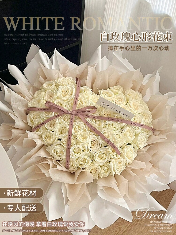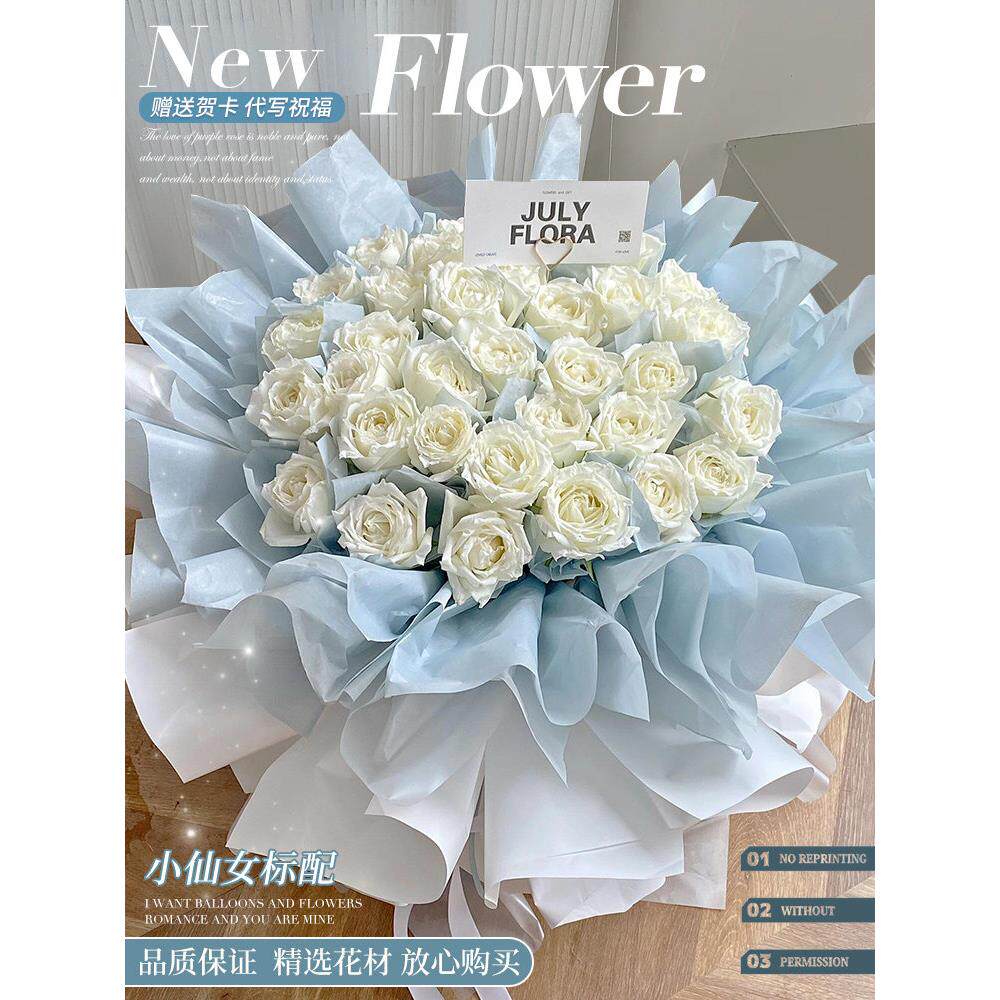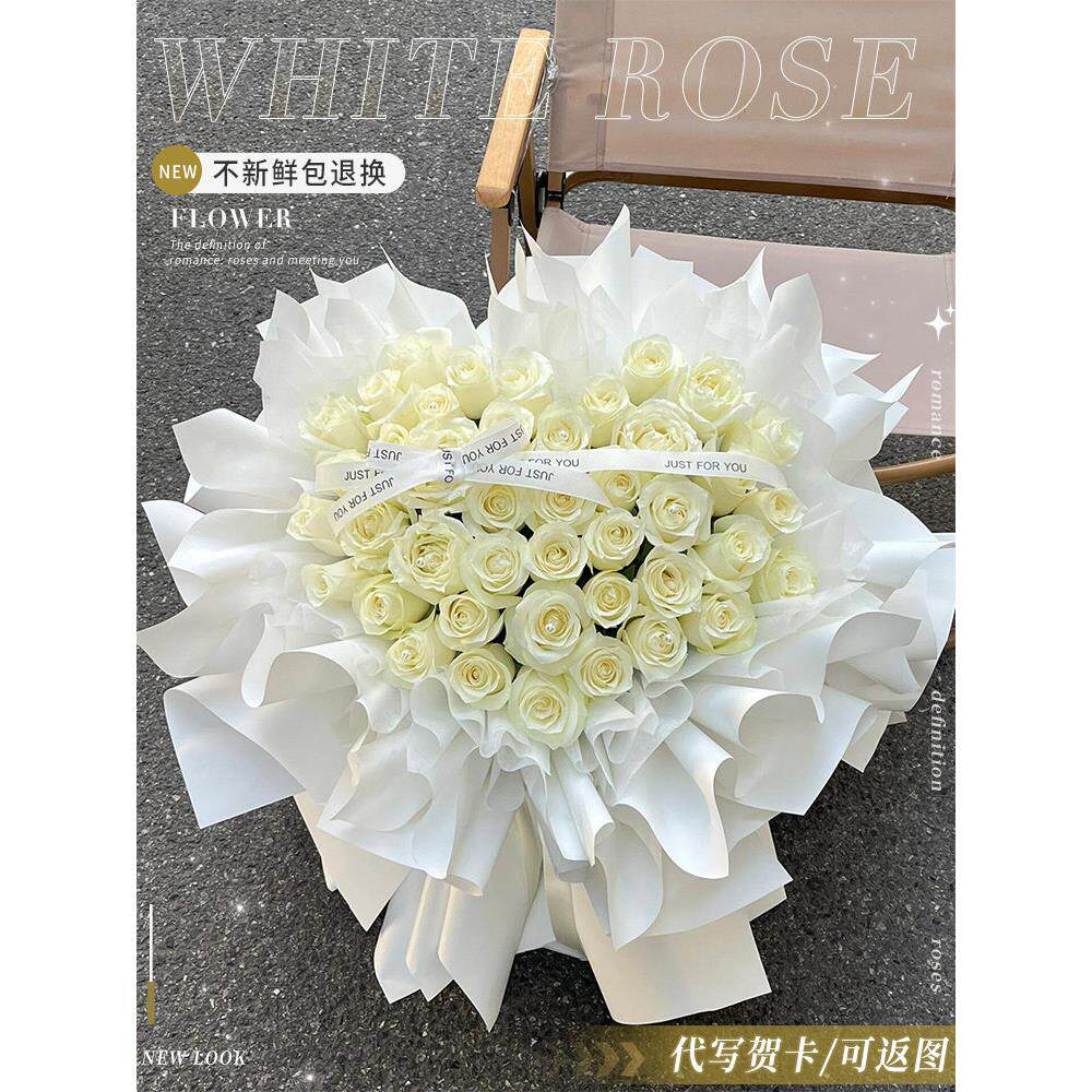 📚 99朵白玫瑰花束生日鲜花速递同城北京上海广州花店配送女友礼物