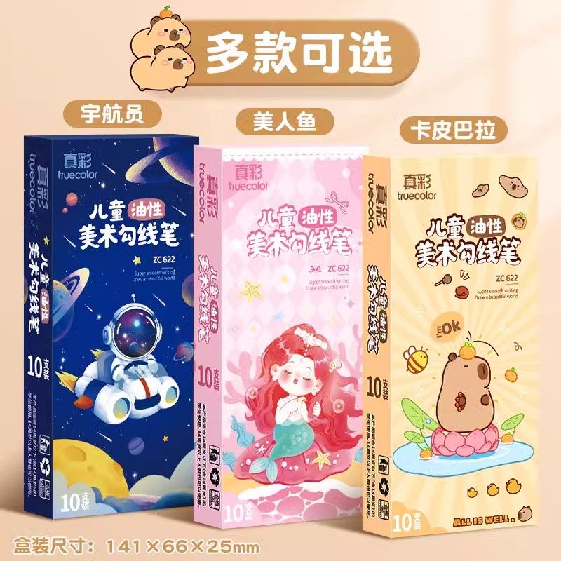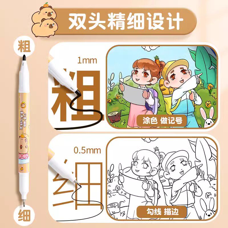 📚 真彩双头记号笔油性速干勾线笔小学生专用防水防油不掉色美术专用划线描边儿童幼儿黑马克笔粗细两头绘画签名