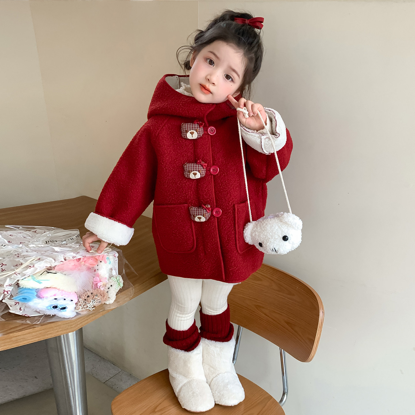 🧣毛绒绒的细节设计更是让人爱不释手。红色调更是显得非常洋气,让小女孩们看起来既可爱又时尚。穿上它,仿佛整个冬天都充满了温暖和活力。