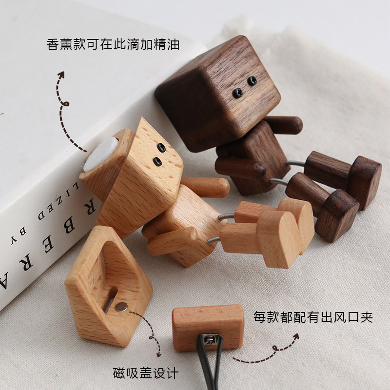 📚 创意车载摆件可动人偶桌面小摆件治愈可爱小木人桌面装饰香薰摆件