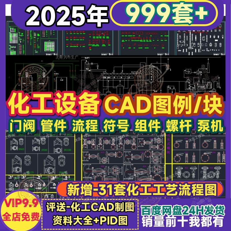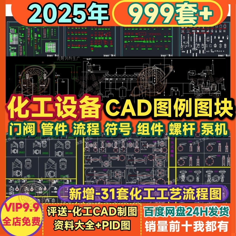 📚 化工绘图CAD图块 符号图库图例阀门管件泵设备流程图组件外制图库