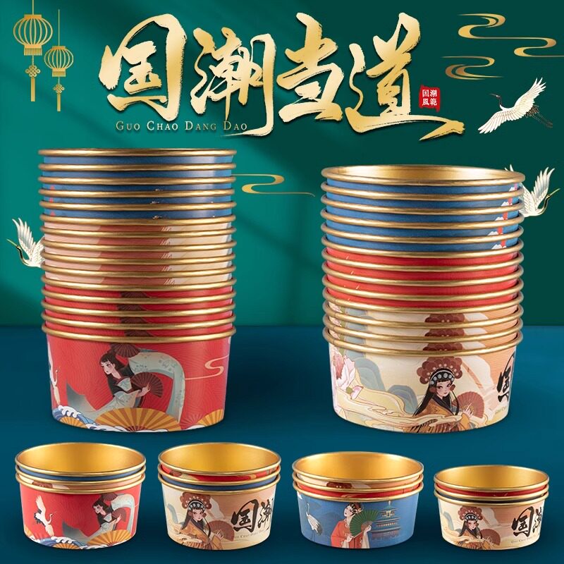 📚 金箔纸碗一次性餐盒卤味国潮风野餐饭盒打包盒邓商用为子同款面碗