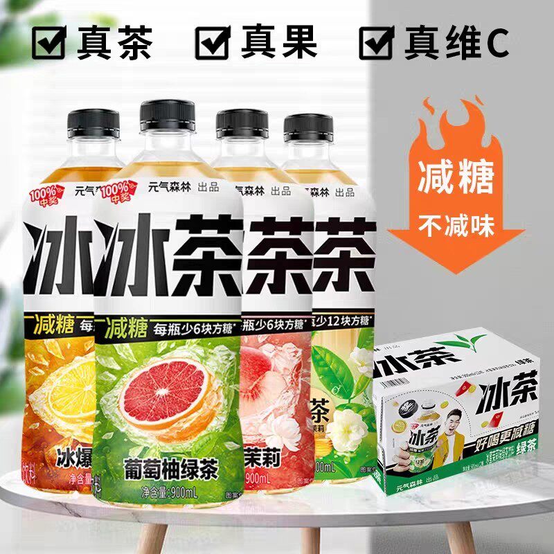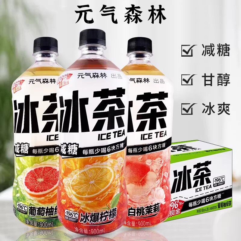 📚 元气森林冰茶900ml*12瓶整箱冰爆柠檬大瓶茶饮料电解质水绿茶减糖