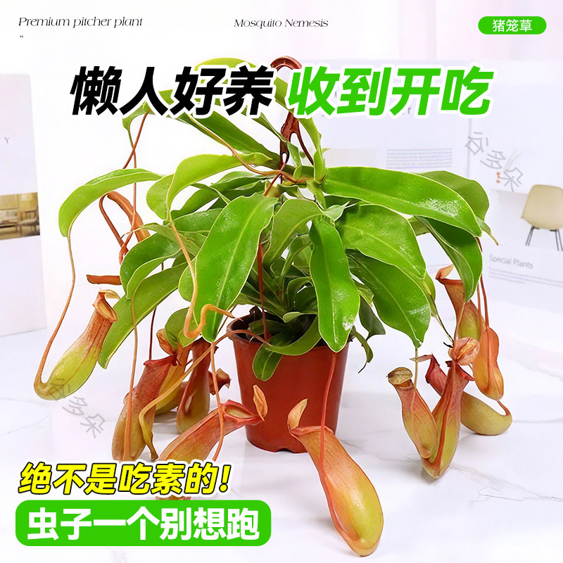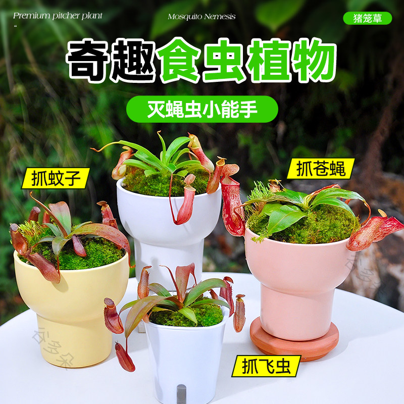 📚 猪笼草盆栽捕蝇草食虫草食人花驱蚊虫超大猪笼草趣味盆栽四季绿植